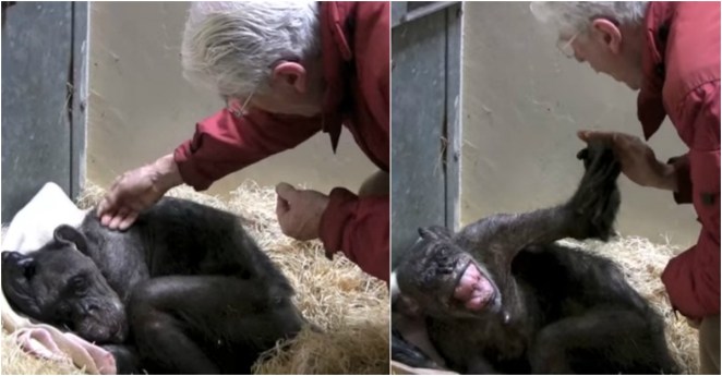 • A dying chimpanzee recognizes an old friend and all of our hearts melted