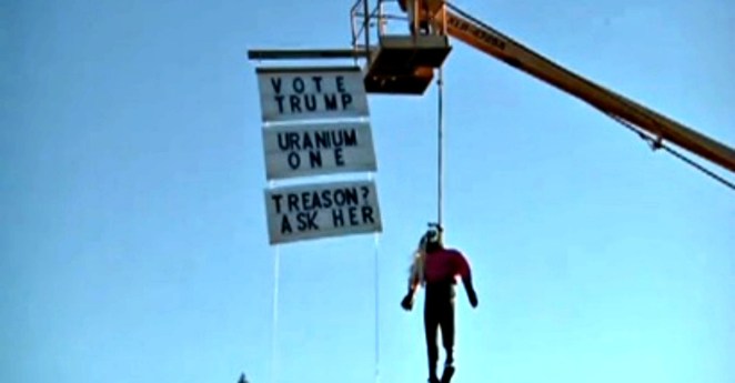 An Oregon man hung a half-dressed Hillary Clinton effigy near an interstate to get drivers’ attention