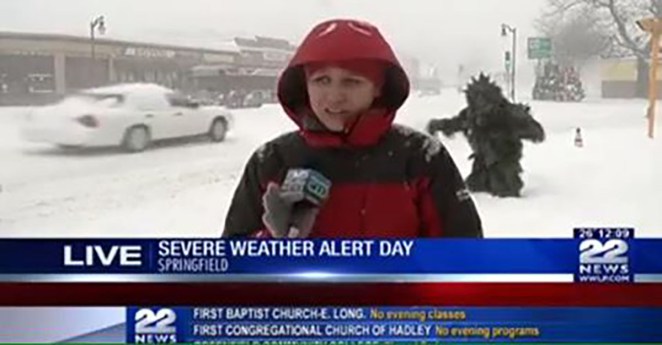 A Boston weatherwoman finally caught the Abominable Tree Man on camera when he wandered into her live shot