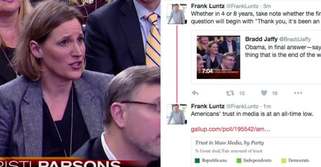 A reporter thanks Obama at final press conference, one pollster makes an interesting comparison about media in the next “4 or 8 years”