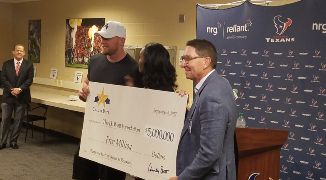 • H-E-B’s CEO writes a huge check out to to J.J. Watt’s Harvey relief fund