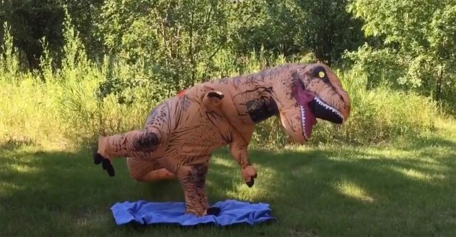 Not everyone is cut out for yoga, but that won’t stop this T.rex from trying to live his most zen life