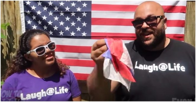 When one of the stars of “Superbad” noticed a guy at a music festival carrying a flag with his face on it, he did what most celebrities would not