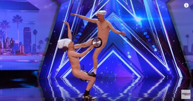 Men creatively cover up after shedding their clothes in this hilarious “America’s Got Talent” audition