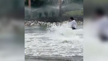 • Florida Man Wakeboards Down Flooded Street Amid Hurricane Ian Warning