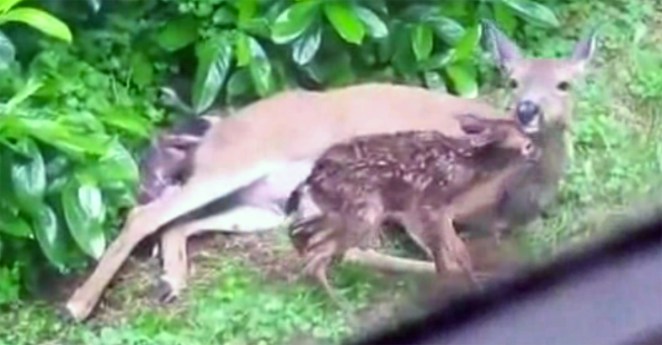 Instead of being grossed out like some of us, this little girl encourages her dog when he needs it most