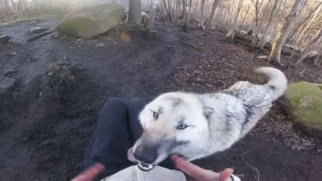 • This giant wolf dog truly believes he’s a tiny lapdog