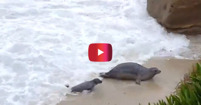 • Deep waves can be really hard to conquer for a baby seal, but at least she has mom close by