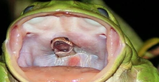 • This frog ate a snake, but it didn’t go down without a fight