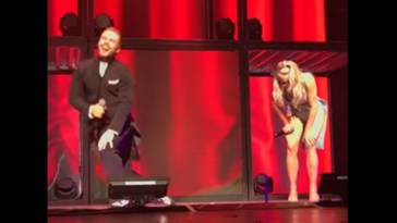 • Julianne and Derek Hough collapse in hysterics during live performance