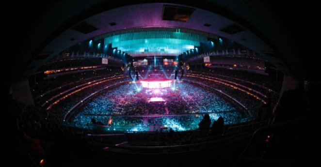 • RodeoHouston answered our prayers with this rotating stage Garth gets to break in