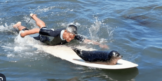 • Surf’s Up: Baby Seal Crashes Surfer Party, Rides Some Waves