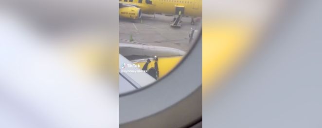 • Viral Video of Worker Taping Spirit Airlines Plane Wings Leaves Social Media Puzzled