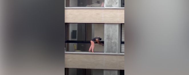 • Woman Seen Cleaning Windows of Her High-Rise Apartment by Standing on Ledge