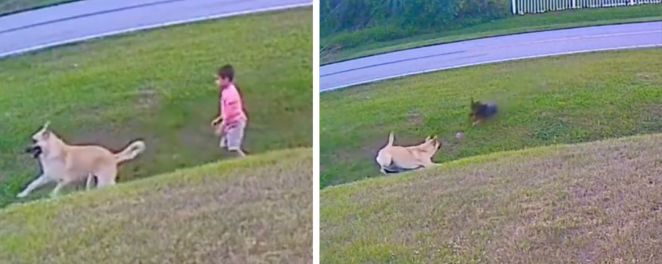 • Watch This Loyal Pup Protect His Tiny Human From Charging Dog