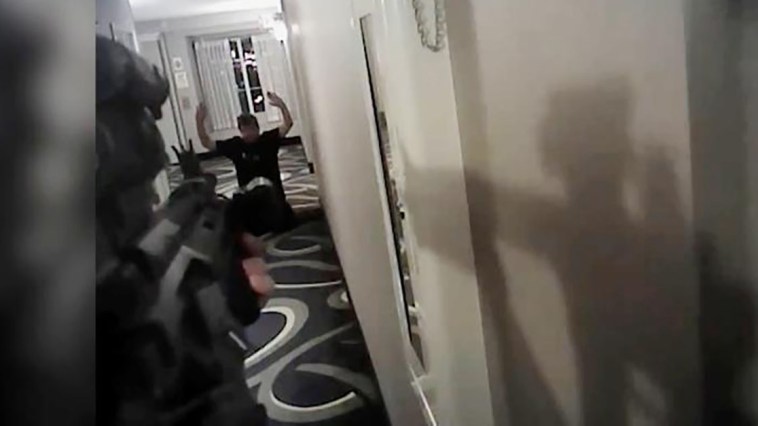 Gruesome body cam footage shows the moment an Arizona cop took down a man in a hotel hallway