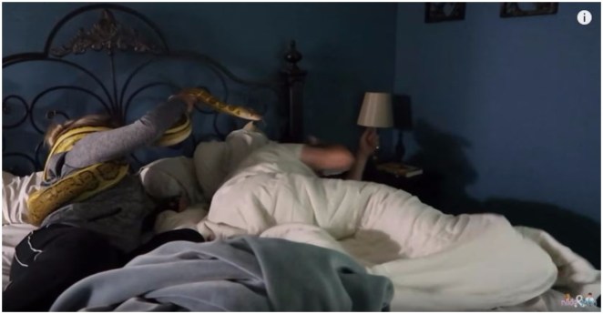 • This woman uses two giant snakes to wake up her husband in this new “Pranksters in Love” video