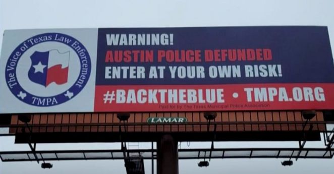 • ‘Enter at Your Own Risk!’: Billboard on I-35 Warns Visitors After Austin Votes to Defund Police