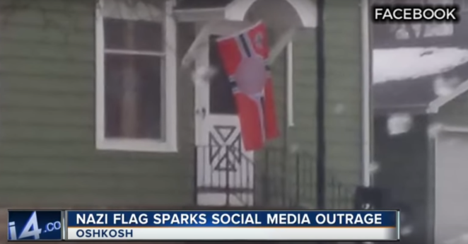 An odd form of protest against Trump involving a Nazi flag has instead harmed the innocent family next door