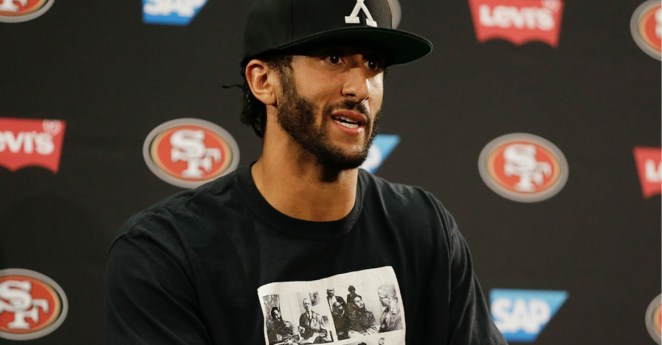 • Colin Kaepernick is making his beliefs known without saying a word