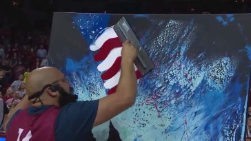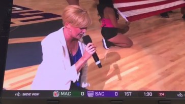 She had almost finished singing the national anthem when she did what she said was “the most patriotic thing I could do”
