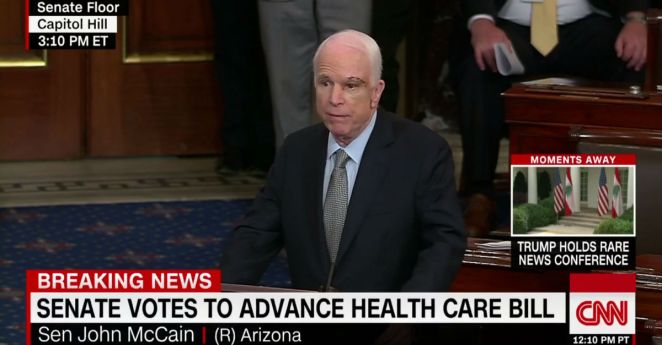 President Trump applauds the Senate after they voted to advance the Republican-backed health care bill