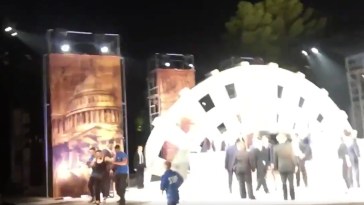 A woman rushed the stage of the play showing the death of President Trump and was hauled out in cuffs