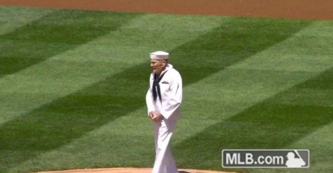 This 92-Year-Old Navy WWII Vet Brought the House Down With Awesome First Pitch